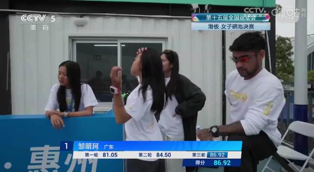 手機螢幕上,鄒明珂從碗池邊緣騰空而起,牛仔褲膝蓋處磨出的毛邊在陽光下特別扎眼——她完成最後一個540度轉體時,我正抓著紐約地鐵搖搖晃晃的扶手,耳機裡傳來解說激動到破音:「廣東隊鄒明珂!86.92分!」