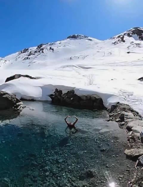 前兩天在社群上刷到一段影片,瞬間被戳中了。畫面裡,皚皚白雪覆蓋著遠山,近處的湖水卻清澈見底,泛著冷冽的藍光。幾位花樣游泳運動員,就在這冰與水的交界處,完成了一組高難度動作。